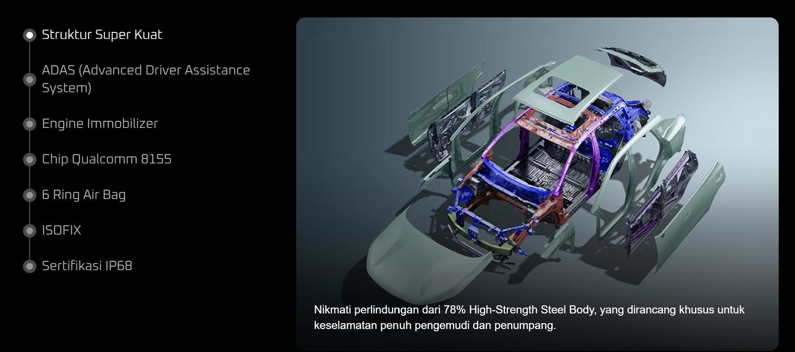 Berkendara dengan tenang dalam perlindungan rangka mobil yang kokoh serta berbagai fitur keamanan canggih dari OMODA.